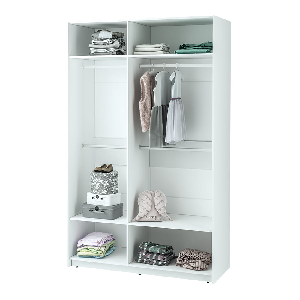 - внутренняя комплектация изделия состоит из отделений для одежды на вешалках, имеющих два уровня штанг,