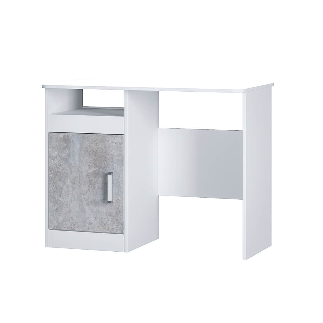 Письменный стол "Паскаль" – прекрасный выбор для организации рабочего места в кабинете или детской. • за счёт сочетания цветов белый и цемент светлый он впишется в любой интерьер, разместить все необходимые документы, вещи или канцелярские принадлежности можно в открытой нише или закрытых полках, находящихся под столешницей.