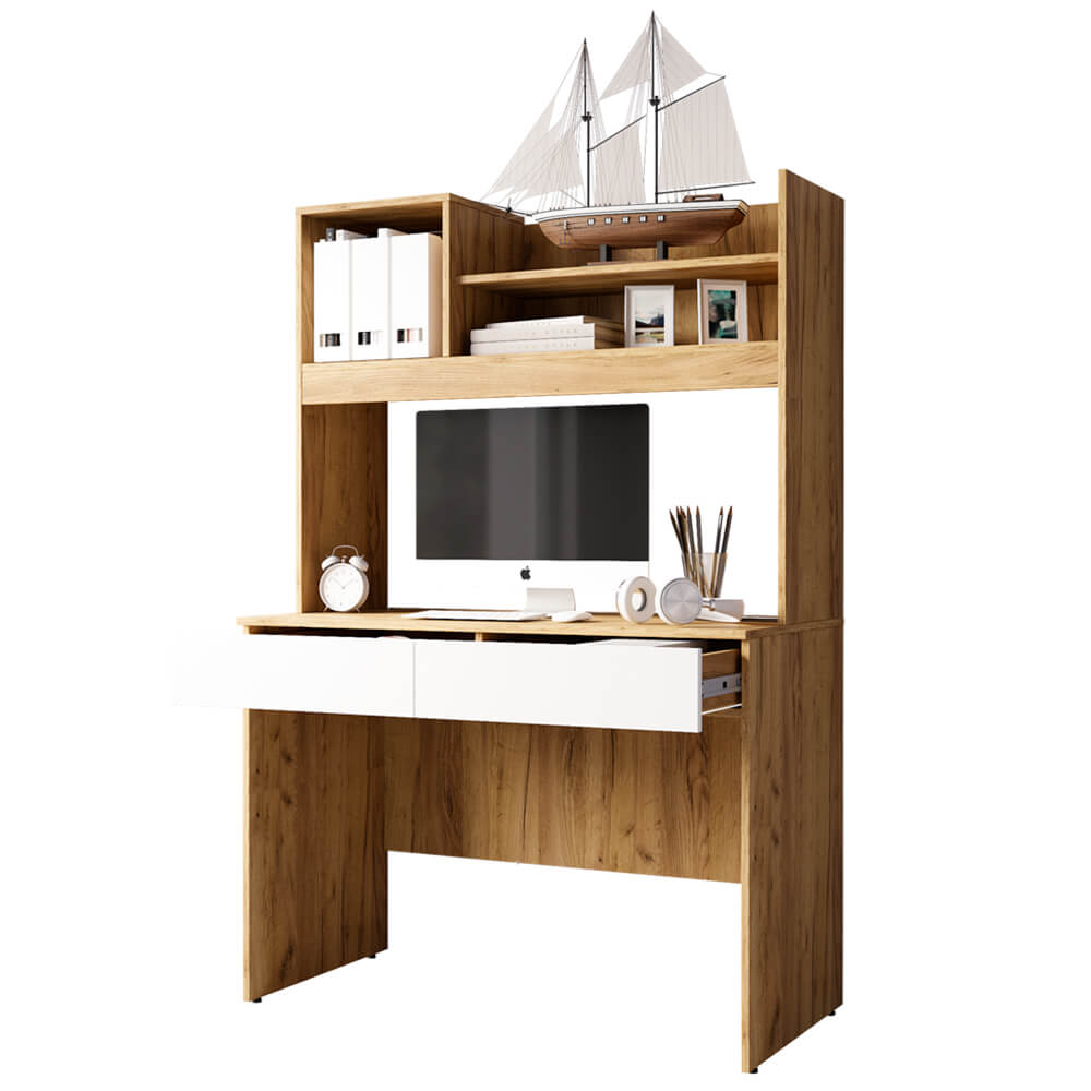 Стильный письменный стол Селфи станет украшением любого рабочего пространства. Модель выполнена в цвете крафт в гармоничном сочетании с белым. В выдвижных ящиках и нишах над столешницей получится разместить все необходимые для работы или учебы вещи. Высокое качество по доступной цене – это письменный стол Селфи ПС-05 в компании «Семья Мебелони».