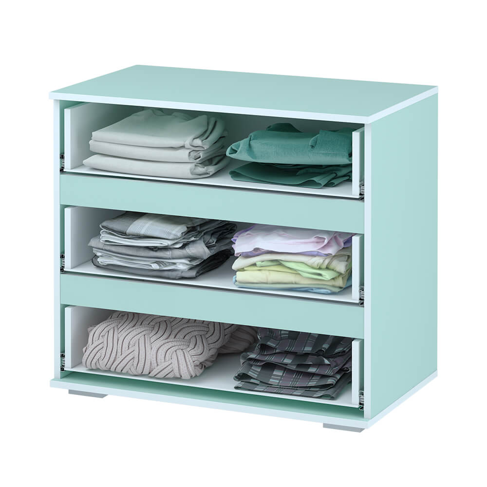 Небольшой комод Тифани из корпуса нежного цвета кенди и белых фасадов, украсит любую спальню.