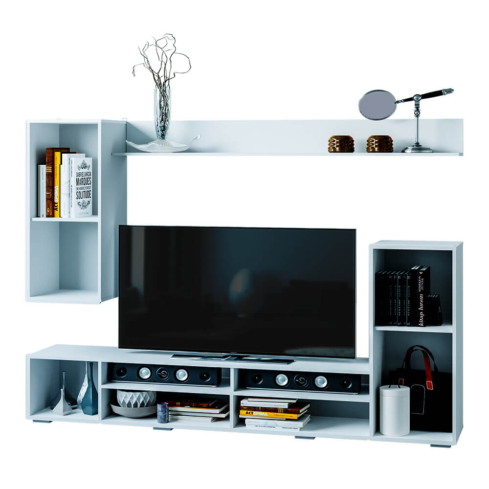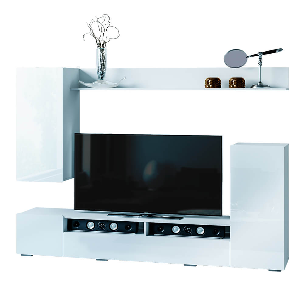 Стильный вариант гостиной "Диаманд" будет прекрасно смотреться в любом интерьере. Белые фасады без ручек и лишнего декора выглядят современно. На верхней открытой полке вы сможете разместить свои любимые сувениры или фотографии.