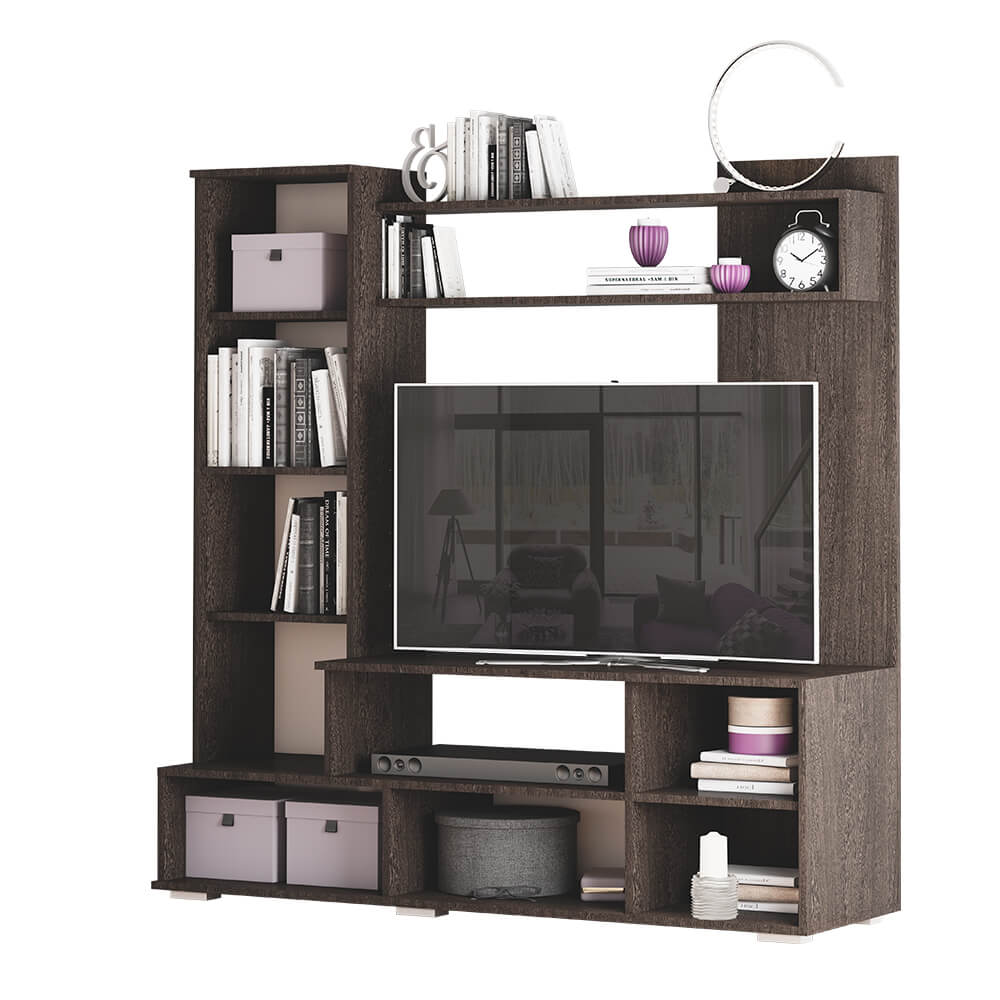 Гостиная "Евро-2" – отличный выбор для небольшой комнаты, который с лёгкостью впишется в интерьер любого стиля. Данная модель вмещает в себя всё необходимое для хранения: вместительную нишу под ТВ, открытые и закрытые полки для книг, сувениров и разных мелочей.