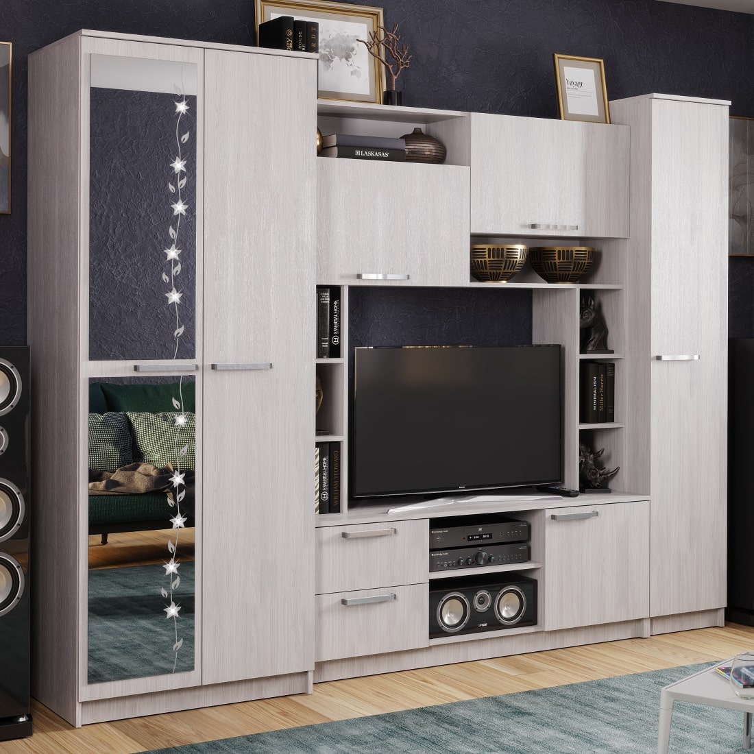 Красивое и практичное решение по лучшей цене — это гостиная Флора ясень белый.