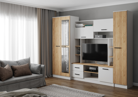 Гостиная "Соло" (лдсп) (Белый/дуб крафт золотой)