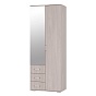 "Двустворчатый шкаф ""Белла"" станет незаменимым помощником в хранении ваших вещей. Модель имеет отделение с хромированной штангой для одежды на вешалках, три выдвижных ящика для белья и аксессуаров, а также верхнюю полку. На один из фасадов прикреплено высокое зеркало.