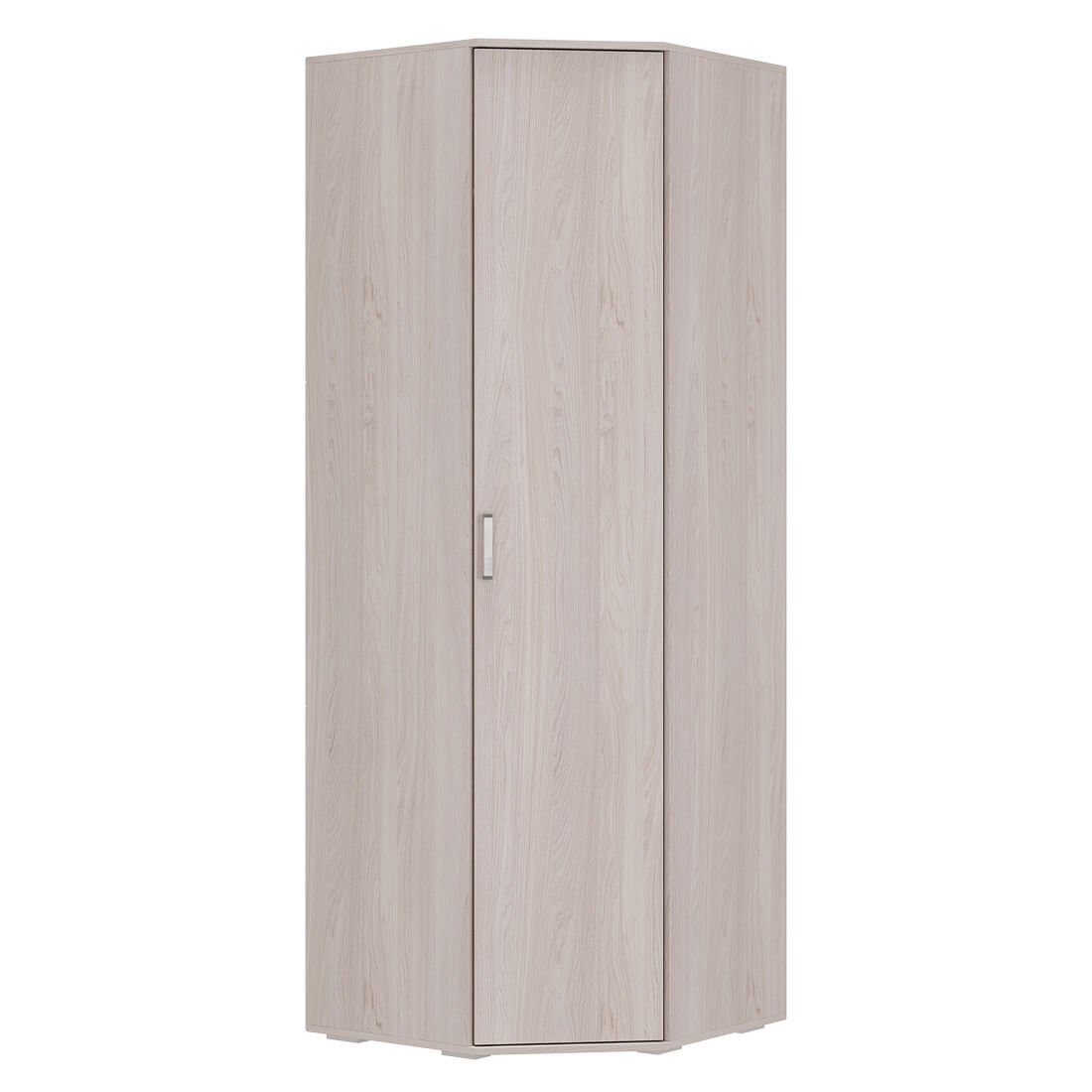 В угловом шкафу "Белла" из одноименной модульной серии можно разместить большой гардероб. В комплектацию входит отделение с хромированной штангой для вешалок, несколько полок для хранения белья и вещей, а также вместительная верхняя полка.