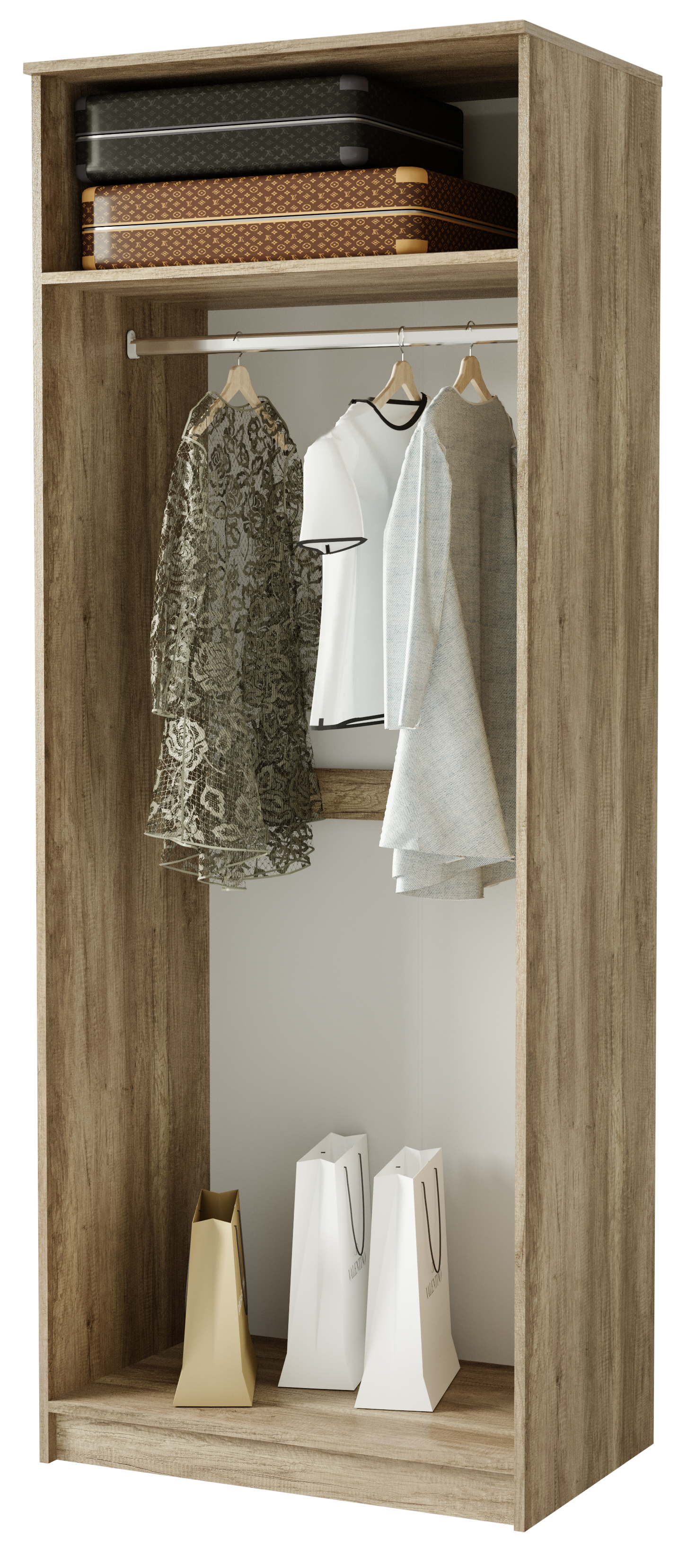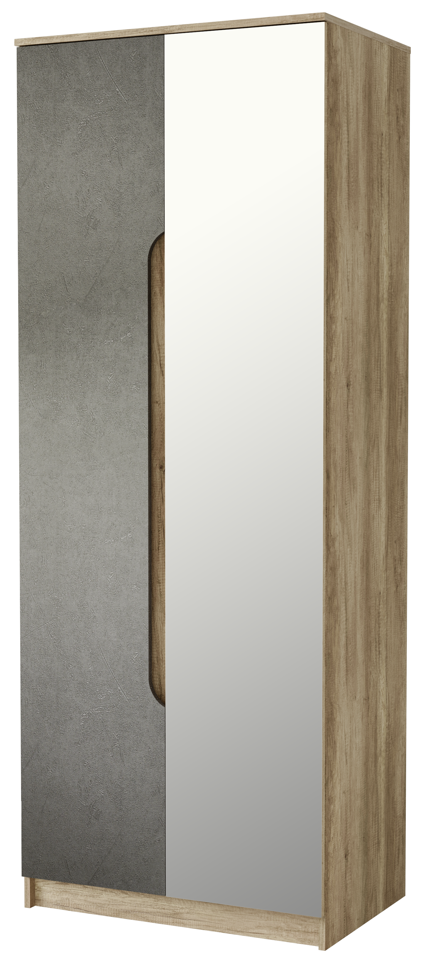 Шкаф Прайм – это стильный и функциональный предмет интерьера, который позволит вам хранить одежду и обувь. Изделие имеет дизайн, характерный для остальной мебели одноименной модульной серии. Корпус выполнен из ЛДСП теплого цвета дуб каньон. Один из фасадов распашной дверцы изготовлен в темном цвете с интегрированной ручкой, а вторая створка – полностью зеркальная. Внутреннее наполнение состоит из платяного отделения со штангой и верхней антресоли. Красивое и практичное решение по лучшей цене — это шкаф Прайм в компании «Семья Мебелони».