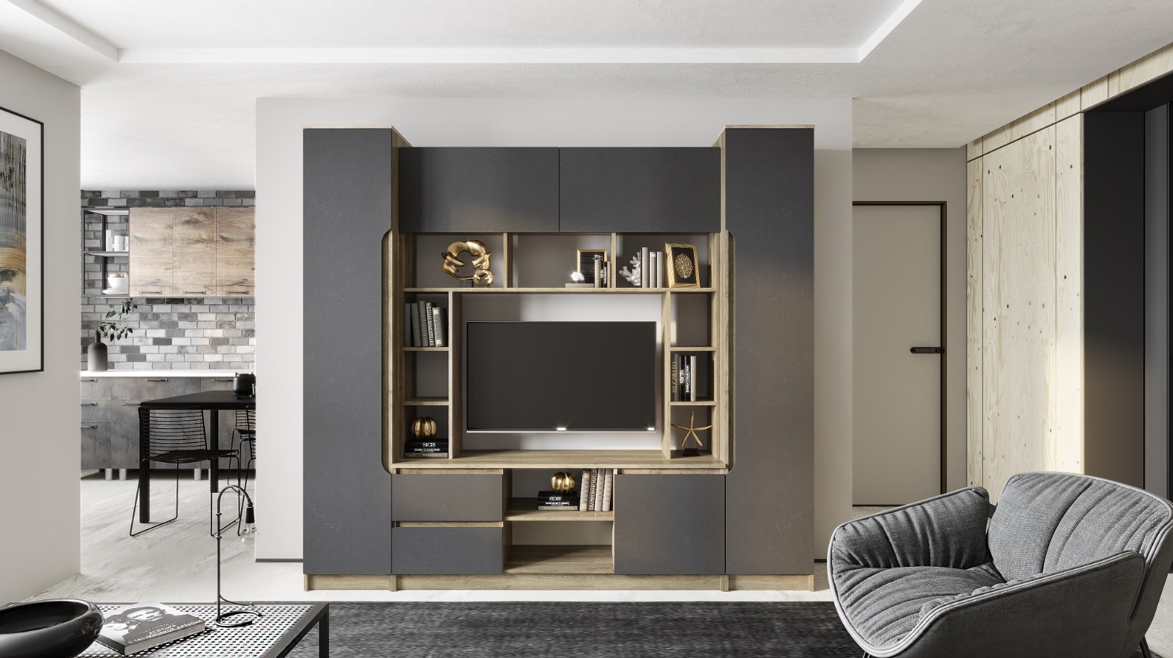 Пенал Прайм относится к одноименной коллекции модульной мебели. Модель изготовлена из ЛДСП в цвете дуб каньон, а фасад распашной дверцы выполнен в темном цвете. Такое сочетание придает пеналу стиля и делает его очень современным. Внутренняя комплектация состоит из полок, на которых можно расположить самые разнообразные вещи или предметы одежды. Красивое и практичное решение по лучшей цене — это пенал Прайм в компании «Семья Мебелони».