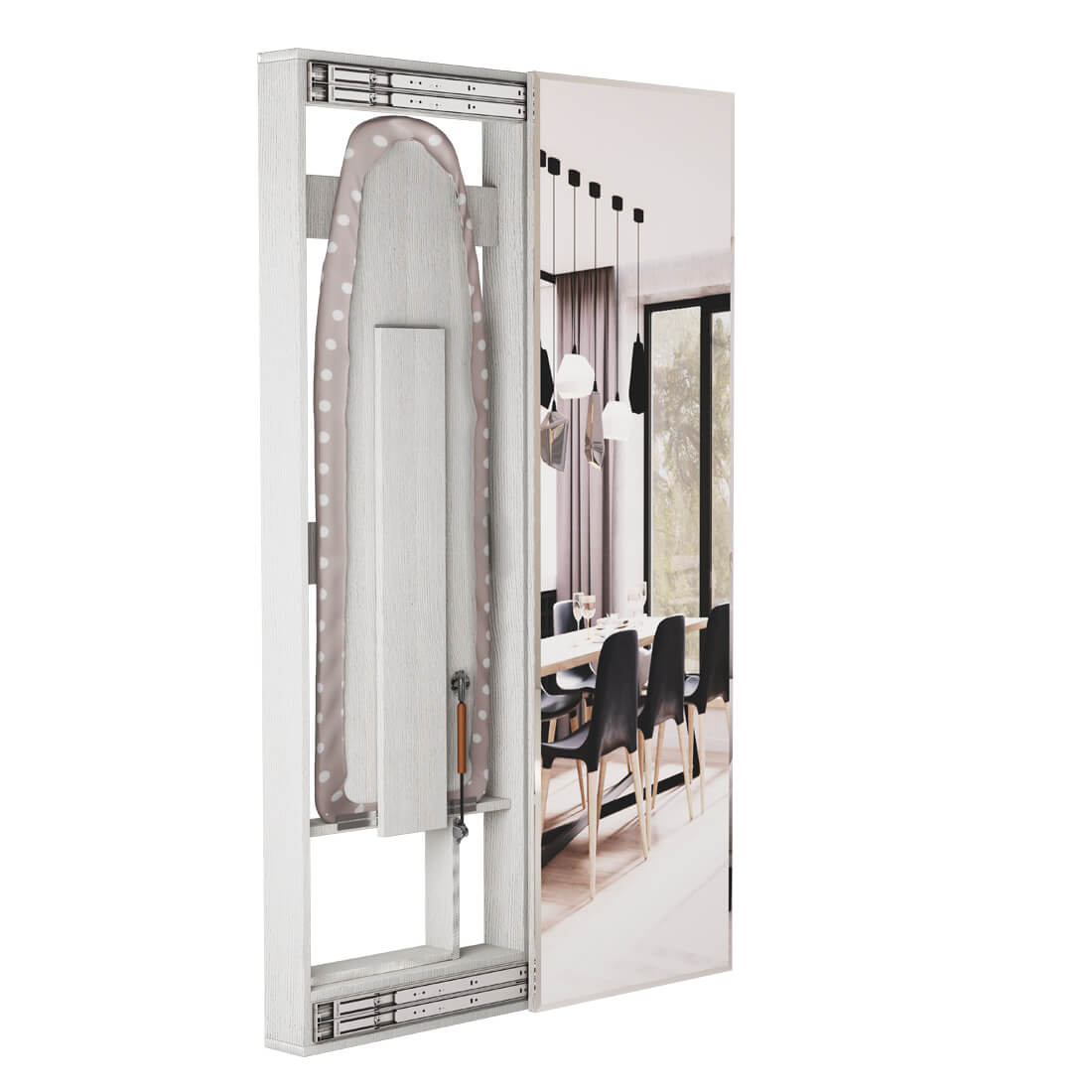 Гладильная доска-купе "Смарт" — бесценная находка для тех, кто стремится максимально рационализировать пространство. Она крепится к стене, что делает эксплуатацию особенно удобной. После глажки вы легко скроете доску за дверцей, превратив всю конструкцию в декоративный элемент интерьера. Преимущества: