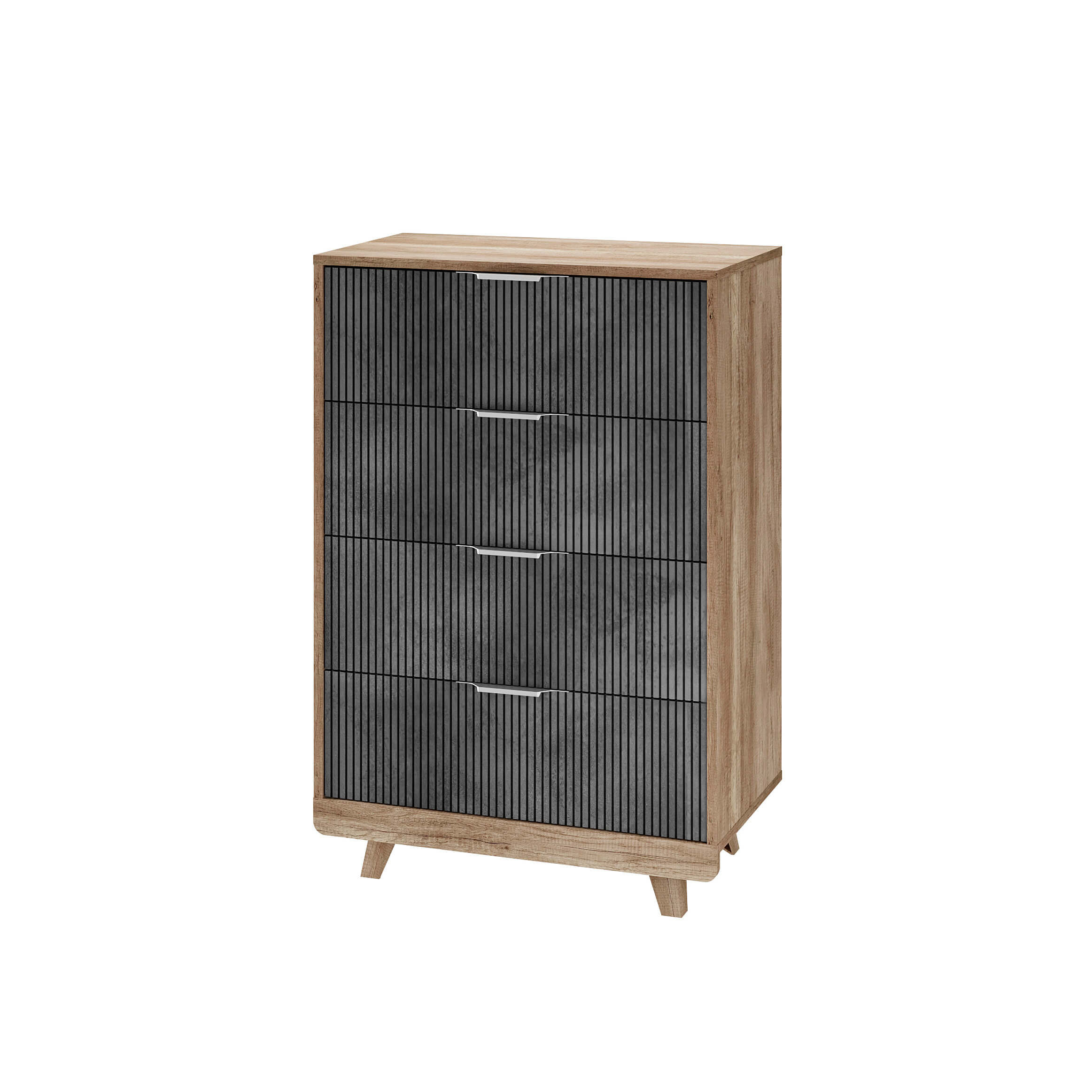 Особый шарм комодам «Мегаполис» придают трендовые цветовые решения фасадов, которые идеально вписываются практически в любой стиль. Оригинальная фрезеровка и эксклюзивная фотопечать выглядит очень эффектно и эксклюзивно. Пыли и грязи на таких поверхностях совершенно не видно, а это огромный плюс для домохозяек! Комод (КМ-02) состоит из четырёх выдвижных ящиков на шариковых направляющих для хранения одежды, пастельного белья и других хозяйственных аксессуаров. Цветовая палитра фасадов комодов впервые разбавлена фасадами с качественной фотопечатью.