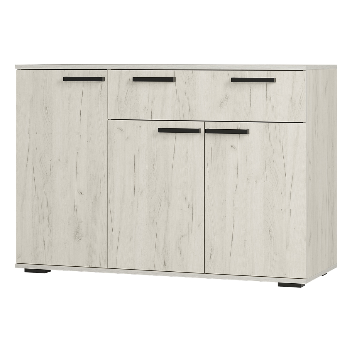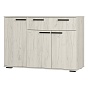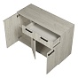 Комод «Стандарт № 4» – очень практичное решение для вашего интерьера. Он вместит в себя большое количество предметов и вещей. Модель состоит из трех секций: верхнего выдвижного ящика, левой части с распашной дверцей и нижней секции также с распашными дверцами и спрятанными за ними полками.