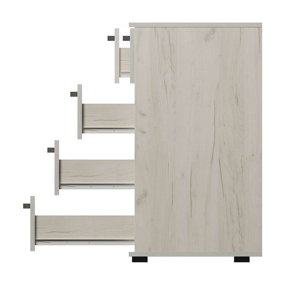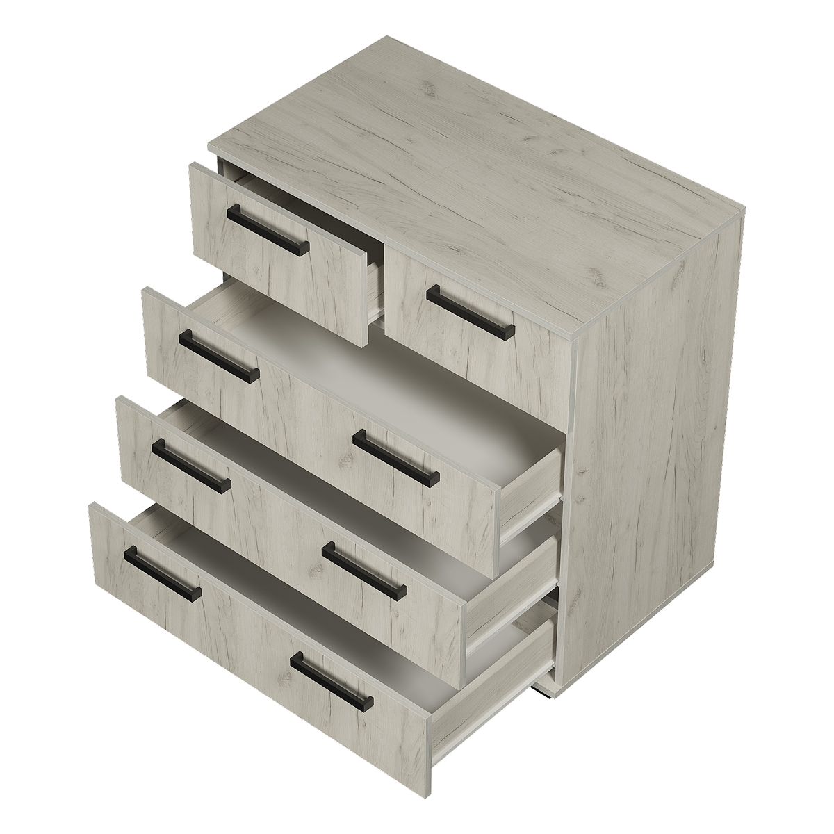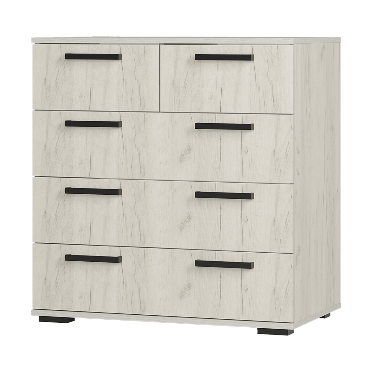 Классическая модель комода «Стандарт № 5» будет прекрасным выбором для любой комнаты вашей квартиры или дома. Для облегчения открывания на нижних ящиках расположились сразу по две ручки геометрической формы. Верхняя секция в данной модели разделена на две выдвижные части для вашего удобства.