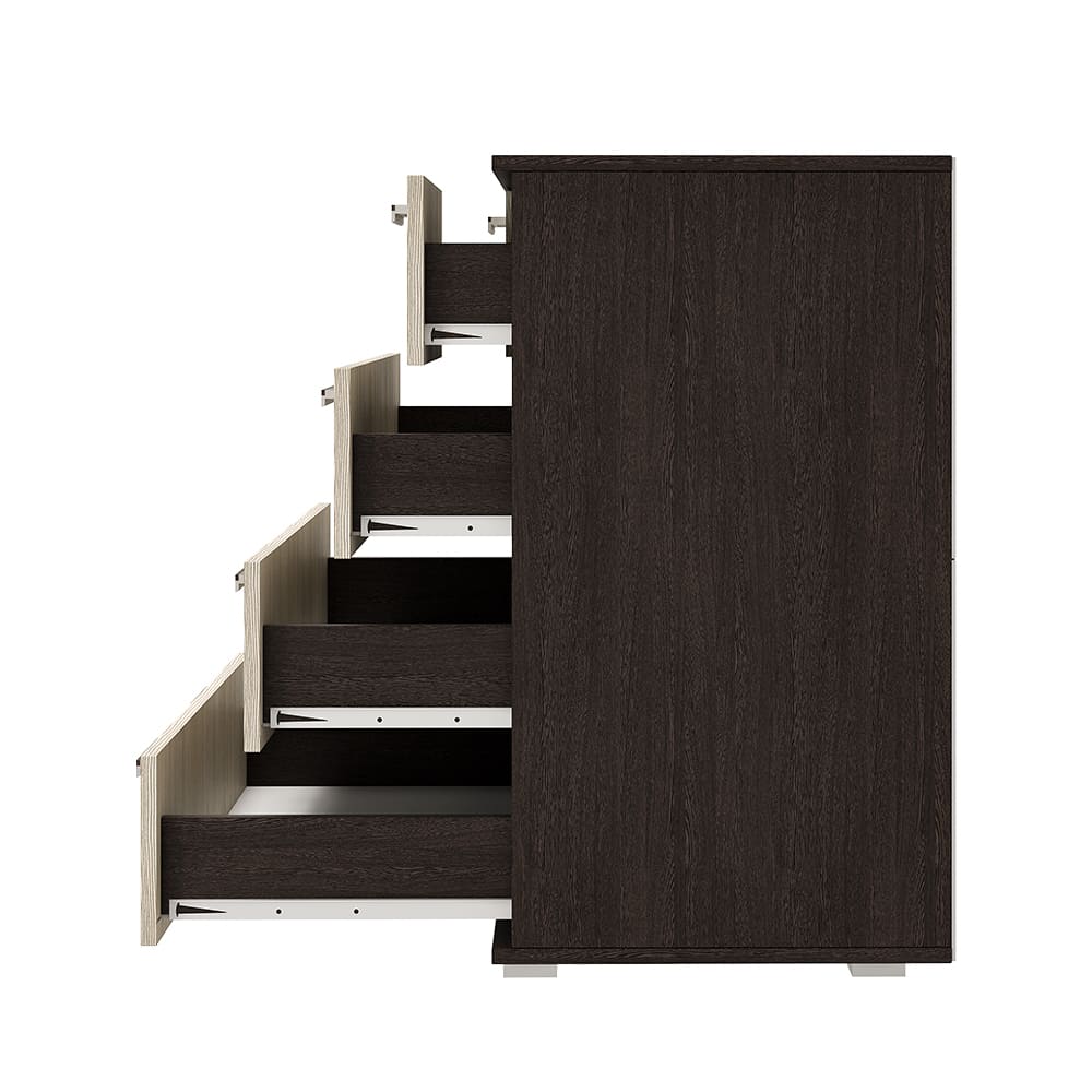 Классическая модель комода «Стандарт № 5» будет прекрасным выбором для любой комнаты вашей квартиры или дома. Для облегчения открывания на нижних ящиках расположились сразу по две ручки геометрической формы. Верхняя секция в данной модели разделена на две выдвижные части для вашего удобства.