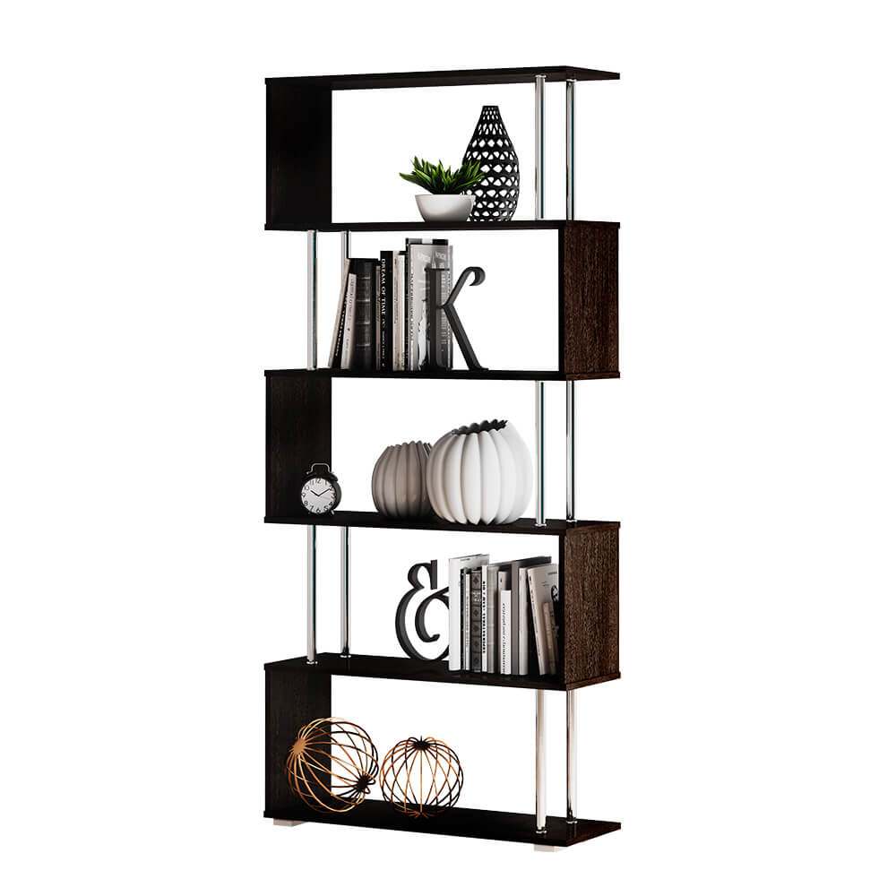 Стеллаж 850 – очень вместительный и при этом визуально легкий предмет интерьера. На нем вы можете разместить все необходимые вещи, включая книги, предметы декора, домашние цветы или фотографии. Невесомости основным полкам стеллажа, выполненным в темном цвете венге, придают хромированные штанги.