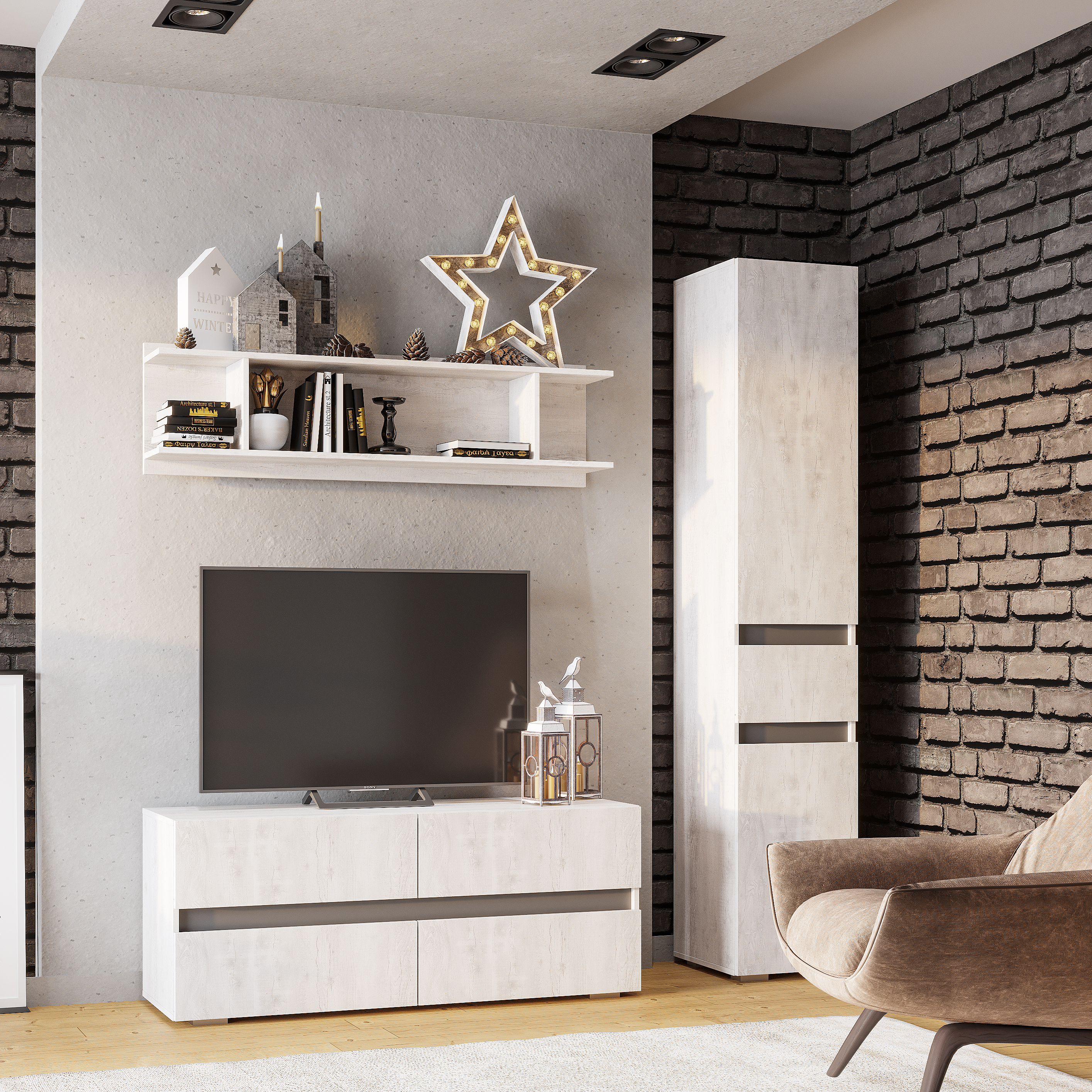 Коллекция «Мрия» — это органичное сочетание классических и современных элементов в дизайне мебели. Оттенки «бетон пайн светлый» и «графит» создают красивый контраст, который привнесет гармонию в интерьер.
