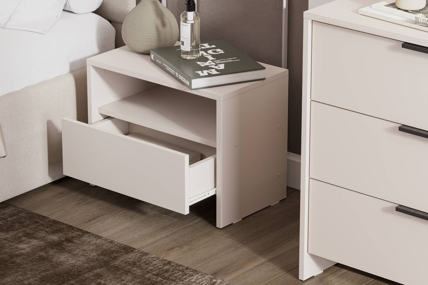 Данное изделие относится к линейке «NN-Мебель». Эта мебель создается на тех же уникальных станках, теми же профессиональными сотрудниками с теми же принципами производства, что и вся мебель на фабрике. Она так же экологична, долговечна и безопасна, а дизайн и функционал нисколько не уступают полюбившимся всем коллекциям бренда «SV-Мебель», от которого ее отличает только гарантия 24 месяца и роликовые направляющие в выдвижных ящиках, что компенсируется максимально доступными ценами на данную линейку.
