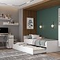 Устанавливается на выкатных роликах. Основание под матрас ЛДСП 16 мм. Распределенная нагрузка на спальное место с матрасом - 80 кг. Рекомендуемая высота матраса - не более 200мм. Рекомендуемый размер матраса - 1900х800мм. Данное изделие относится к линейке «NN-Мебель». Эта мебель создается на тех же уникальных станках, теми же профессиональными сотрудниками с теми же принципами производства, что и вся мебель на фабрике. Она так же экологична, долговечна и безопасна, а дизайн и функционал нисколько не уступают полюбившимся всем коллекциям бренда «SV-Мебель», от которого ее отличает только гарантия 24 месяца и роликовые направляющие в выдвижных ящиках, что компенсируется максимально доступными ценами на данную линейку.