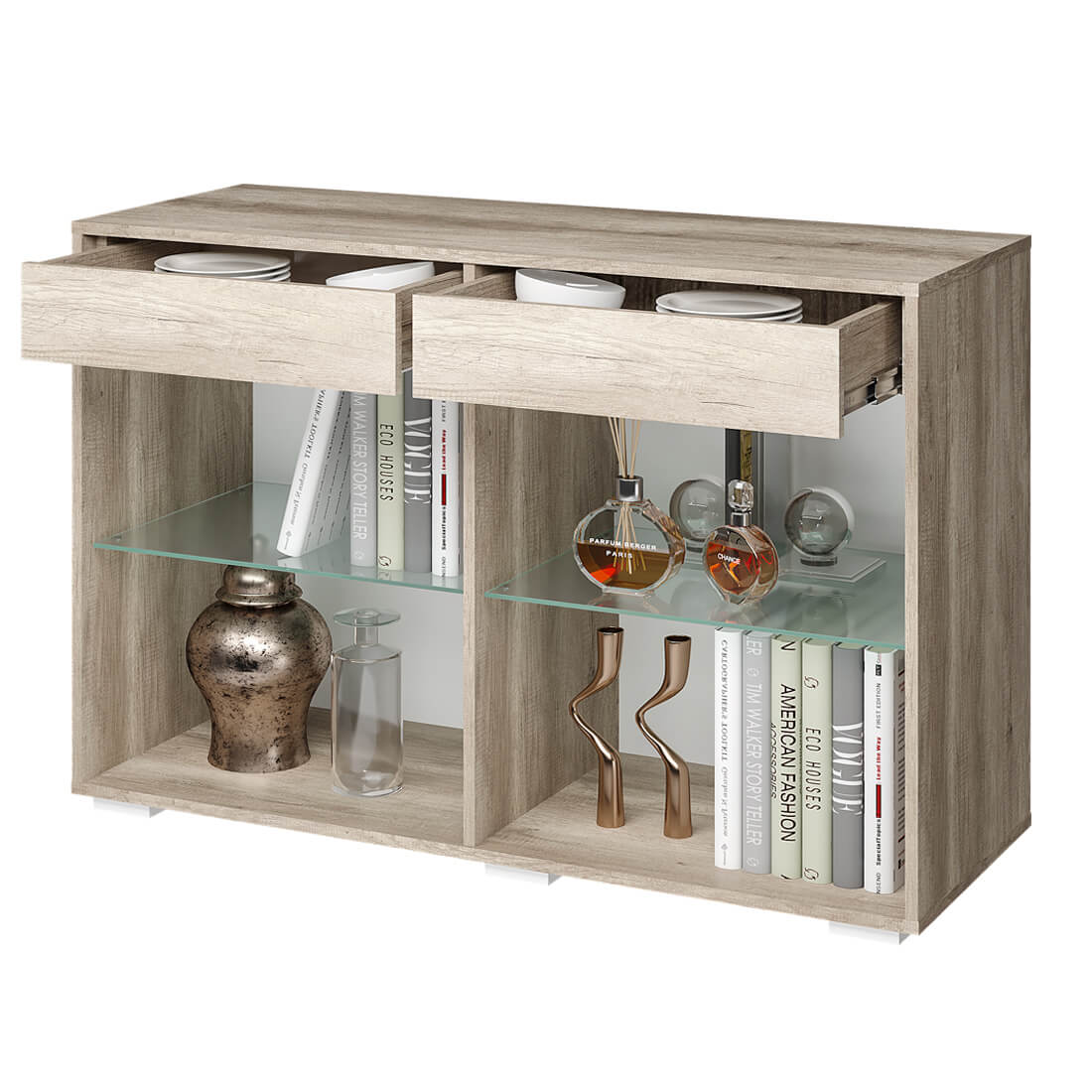 Максимальная нагрузка на стеклополку - 10 кг, на ящик - 15 кг, на верхнюю крышку - 10 кг.