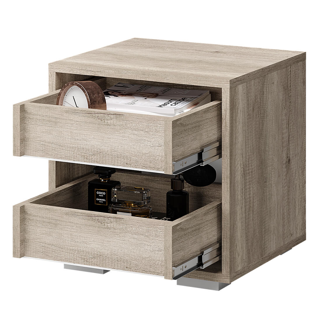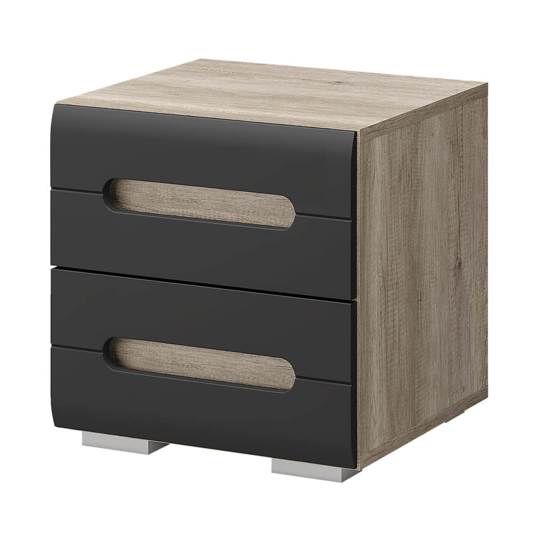 Стильная прикроватная тумба "Наоми" дополнит вашу спальню. Модель не имеет фурнитуры.Ручки интегрированы в фасады двух выдвижных ящиков. Комбинация темного цвета и цвета "дуб каньон" позволит тумбе стать частью современного интерьера.