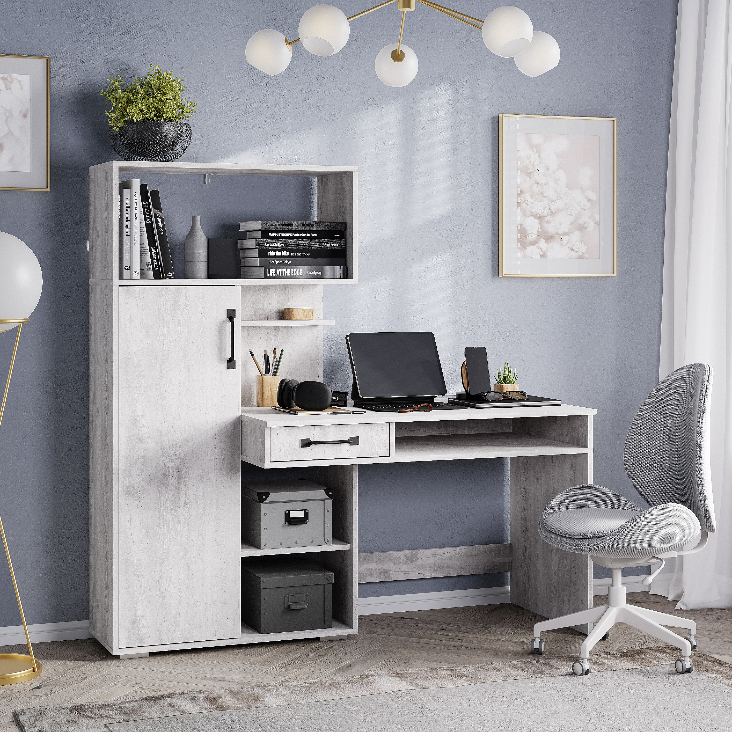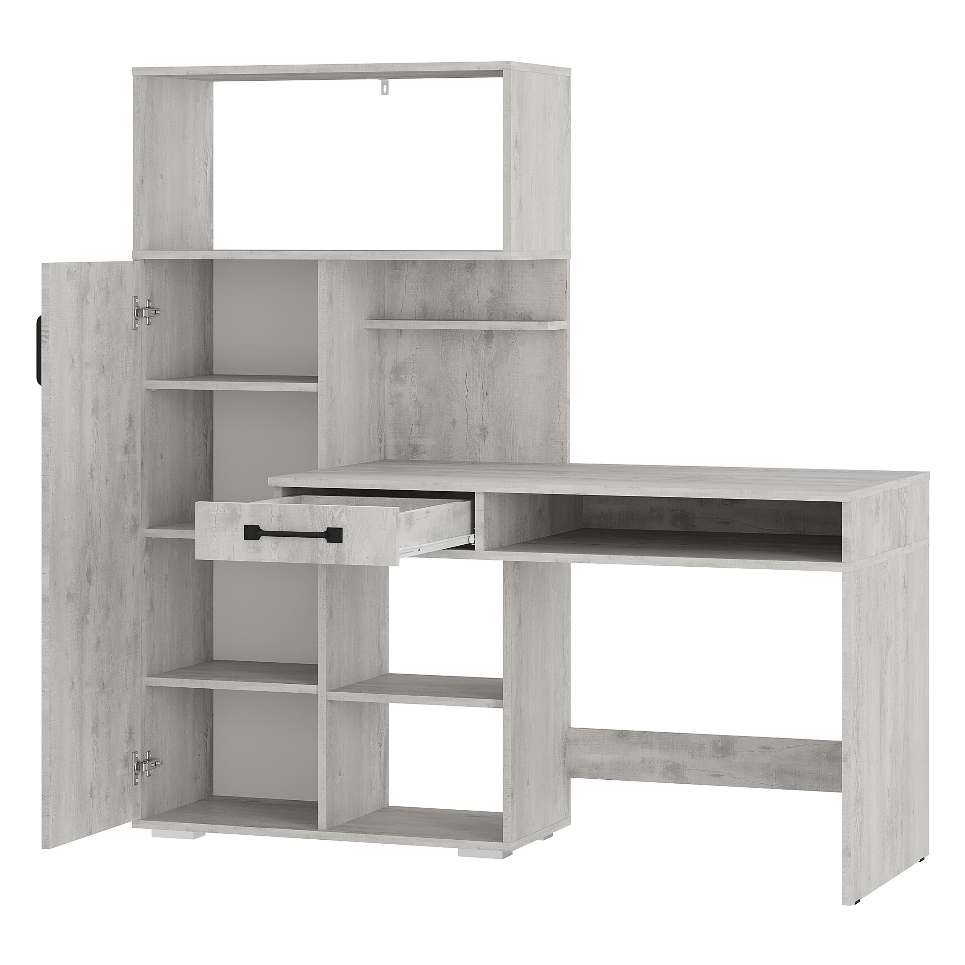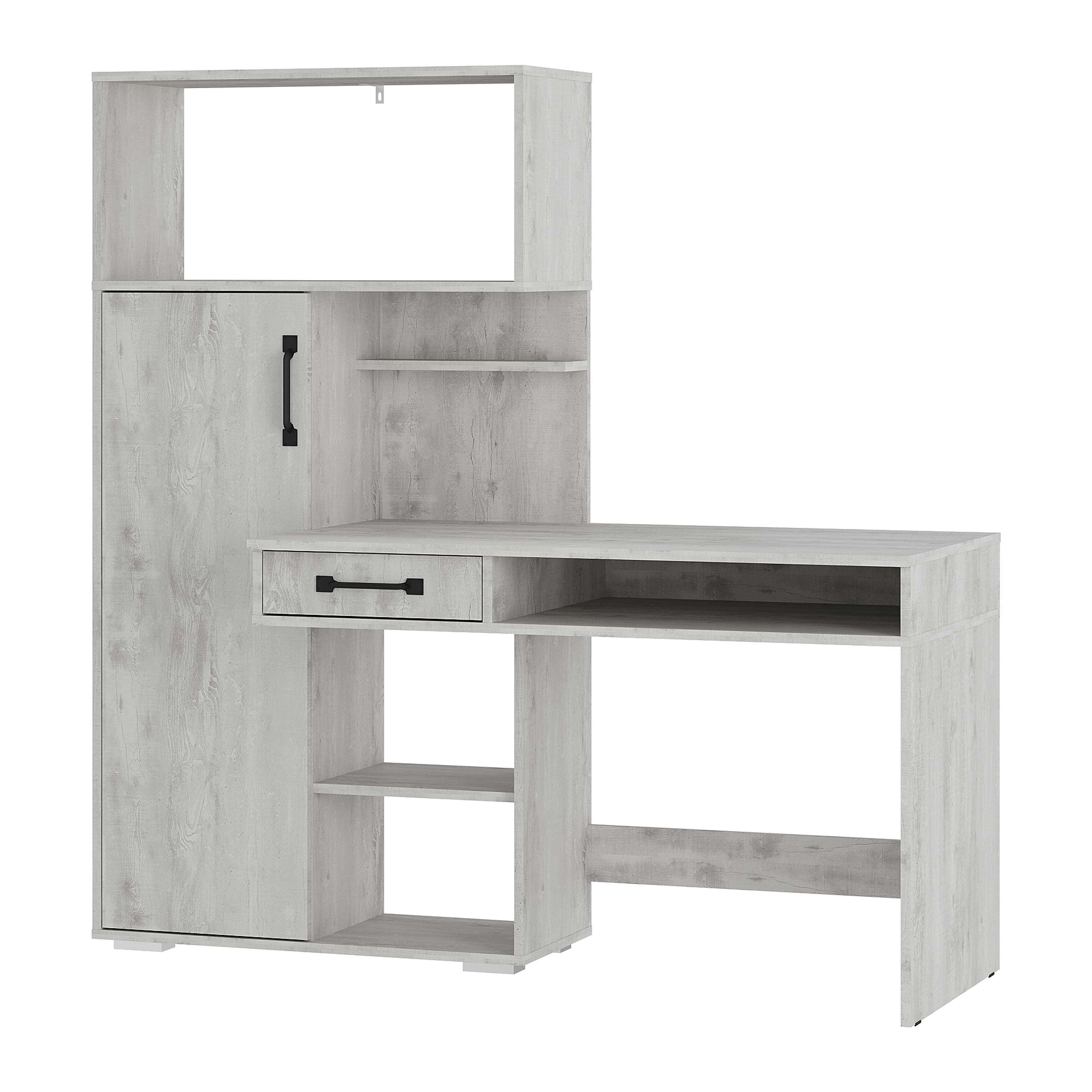 Стол письменный "Прима" ПС-02 бетон пайн светлый станет любимым местом для работы или учебы. Помимо вместительной столешницы в столе есть выдвижной ящик, открытые ниши и полки для хранения всех необходимых вещей. Также на полках за дверцей можно расположить книги, документы, сувениры.