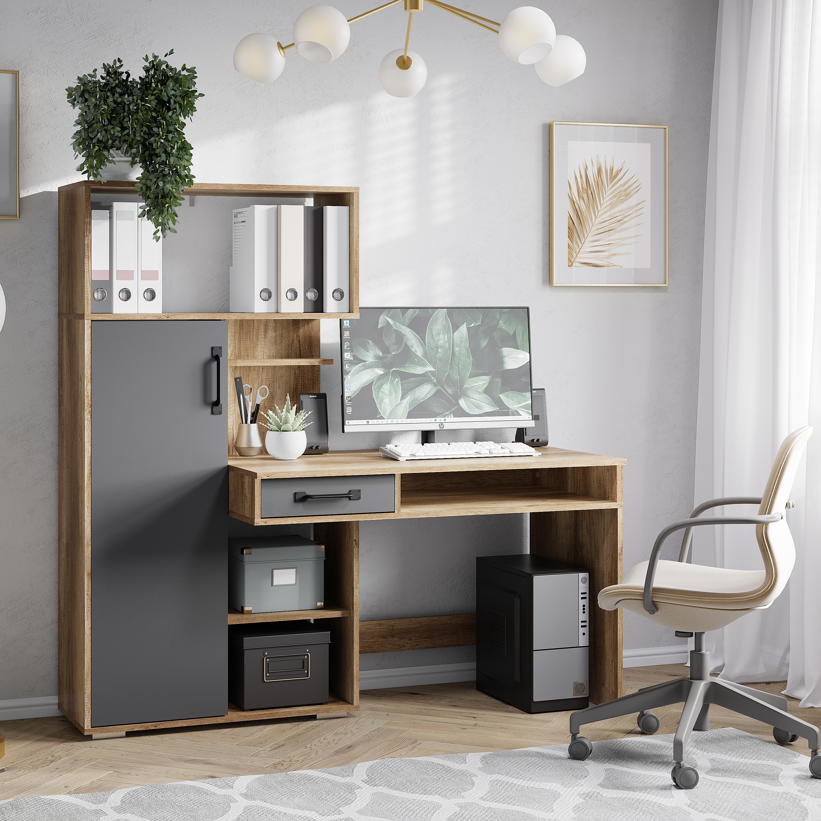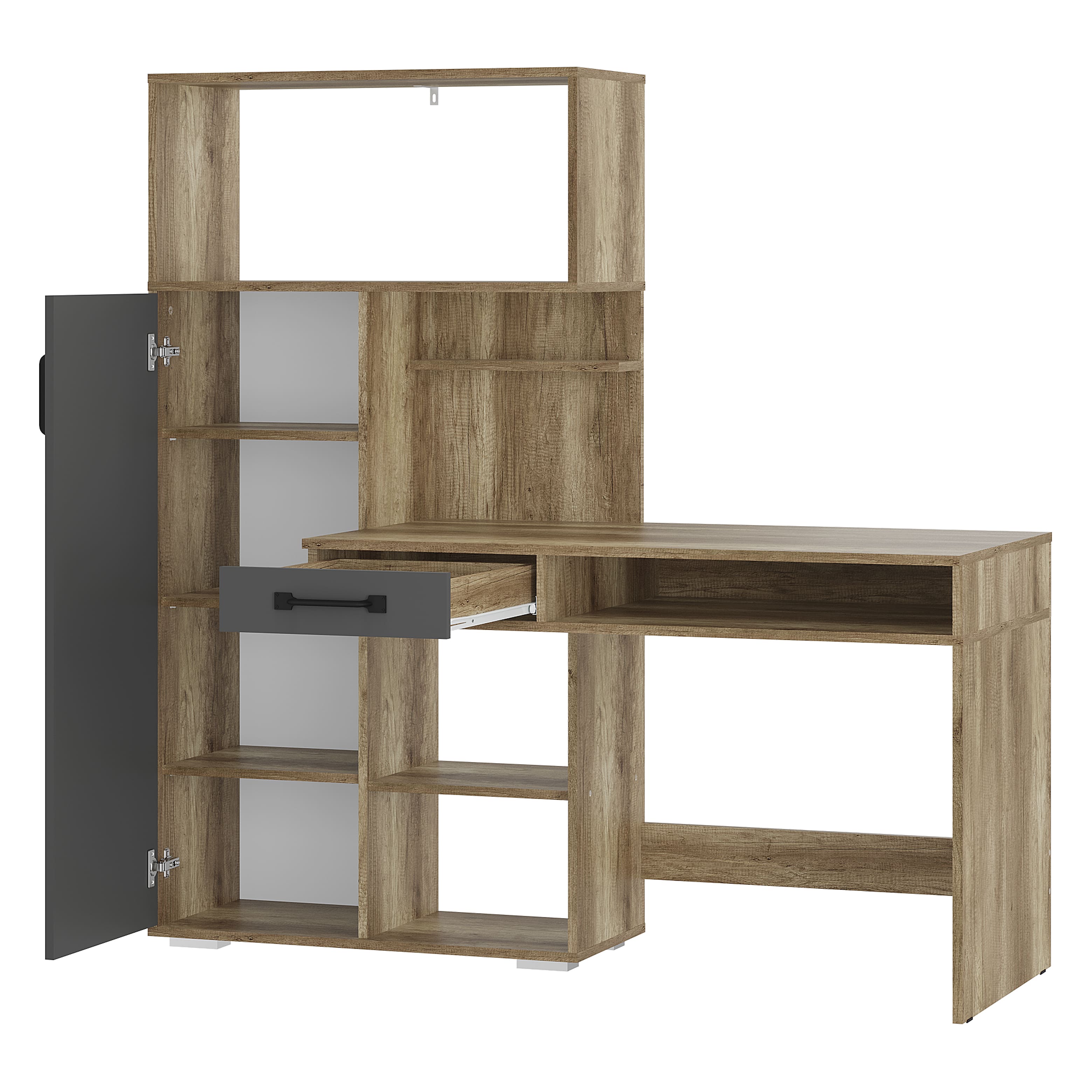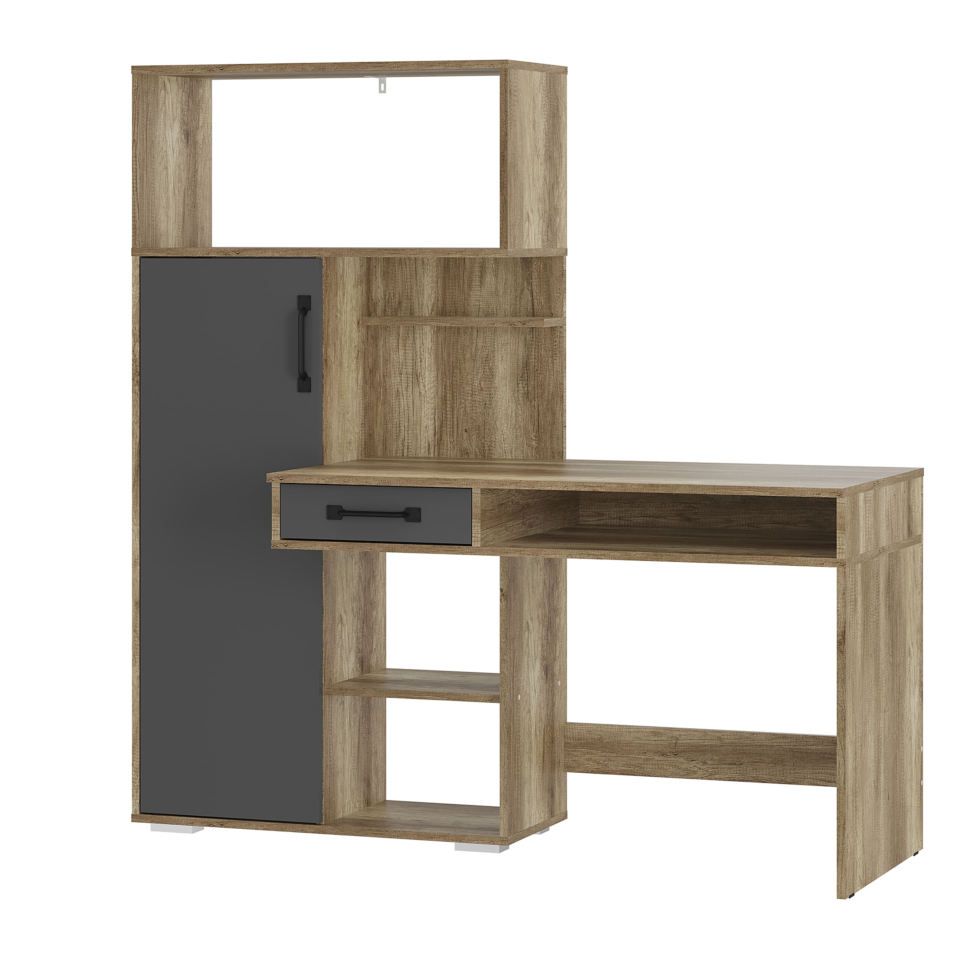 Стол письменный "Прима" ПС-02 дуб каньон/графит станет любимым местом для работы или учебы. Помимо вместительной столешницы в столе есть выдвижной ящик, открытые ниши и полки для хранения всех необходимых вещей. Также на полках за дверцей можно расположить книги, документы, сувениры.