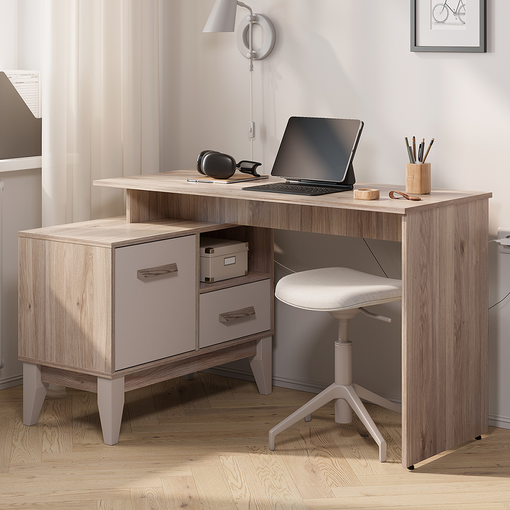 Письменный стол «Скандика» ПС-02 - это универсальное решение для дома и офиса. Данная модель оснащена удобной рабочей поверхностью, на которой можно разместить ноутбук, лампу и рабочие инструменты. Помимо рабочей поверхности также имеется встроенная тумба, которая состоит из просторного отсека за дверцей, ящика и одной открытой полки. Благодаря компактным размерам стол легко уместится даже в небольшой комнате.