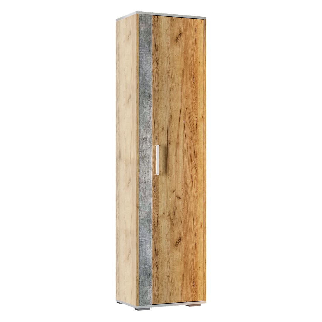 Шкаф с распашной дверцей Кензо – отличный выбор для современного интерьера, особенно в стиле лофт. Модель выполнена из ЛДСП в цвете крафт с контрастной вставкой цвета бетон. Комплектация представляет собой отделение с выдвижной штангой для одежды на вешалках и полок для вещей и аксессуаров. Правильный выбор по лучшей цене — это шкаф Кензо в компании «Семья Мебелони».