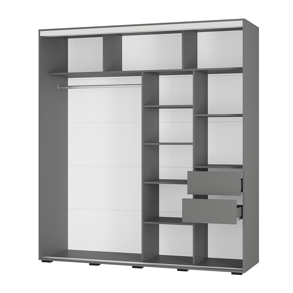 Шкаф-купе "Крафт-6" - это неизменный хит продаж. Вместительная модель идеально подойдет для обладателей большого гардероба. Благородный оттенок "графит" подчеркивает красоту дверей, которые декорированы прозрачным стеклом и белой лакобелью. Зеркало - тип обработки фацет. Стекло - белый лакобель, тип обработки фацет.
