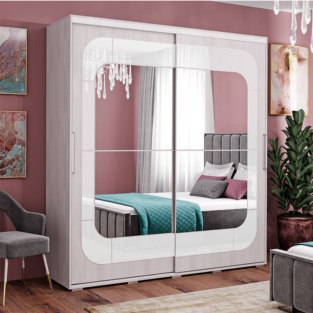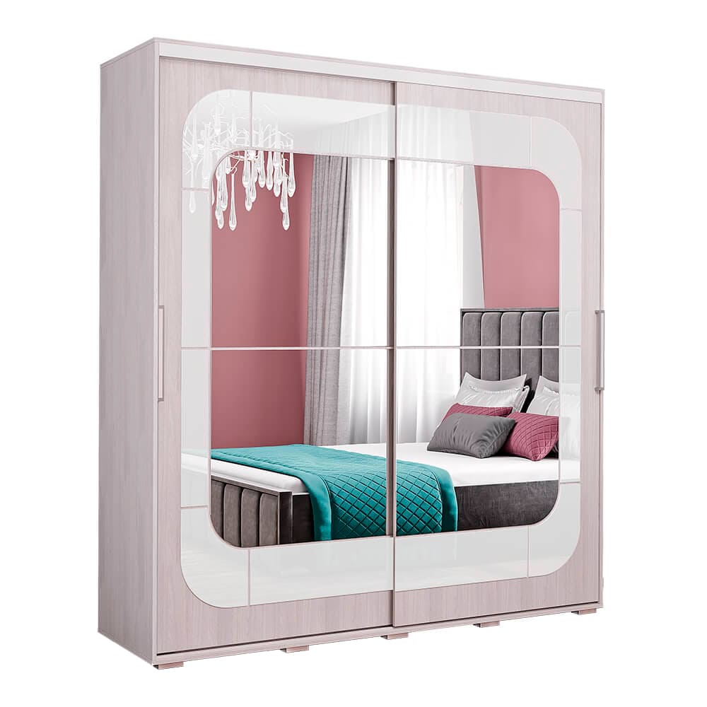 - раздвижные створки декорированы зеркалом и стеклом - такой прием облегчает конструкцию и позволяет расширить пространство,