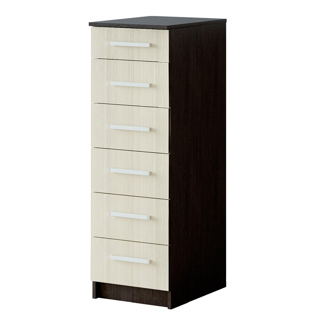 Невероятно практичная и функциональная модель комода "Фиеста" отлично впишется в любую комнату от коридора до спальни. Компактный размер изделия вместит в себя большое количество вещей за счет шести выдвижных ящиков. Верхнее отделение меньше остальных и прекрасно подходит для хранения мелочей. Комод "Фиеста" выполнен из ЛДСП высокого качества в контрастных цветах "венге" и "лоредо".