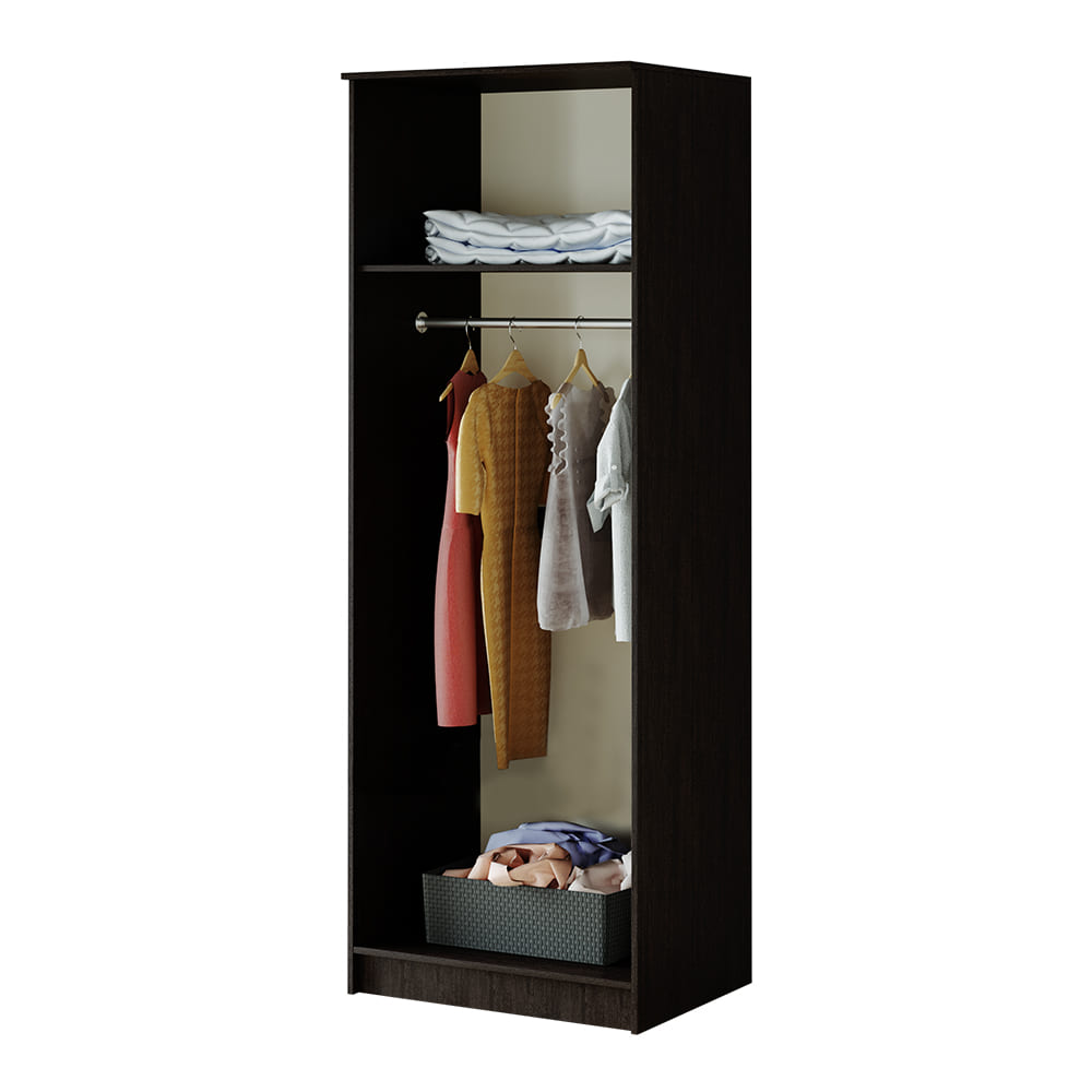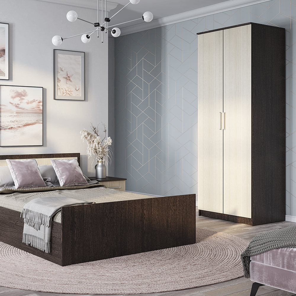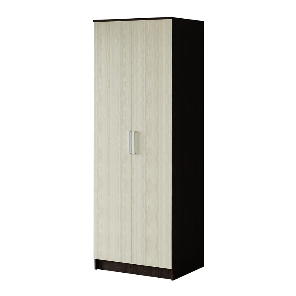 Лаконичная модель двухстворчатого шкафа "Фиеста" справится с размещением небольшого гардероба. При этом модель содержит достаточно вместительную зону с хромированной штангой для верхней одежды или одежды на вешалках, а также верхнее и нижнее отделение для хранения вещей. Можно дополнительно укомплектовать полками П-800 (3 шт), которые приобретаются отдельно. Изделие изготовлено из высококачественной ЛДСП в классическом сочетании цветов "венге" и "лоредо".