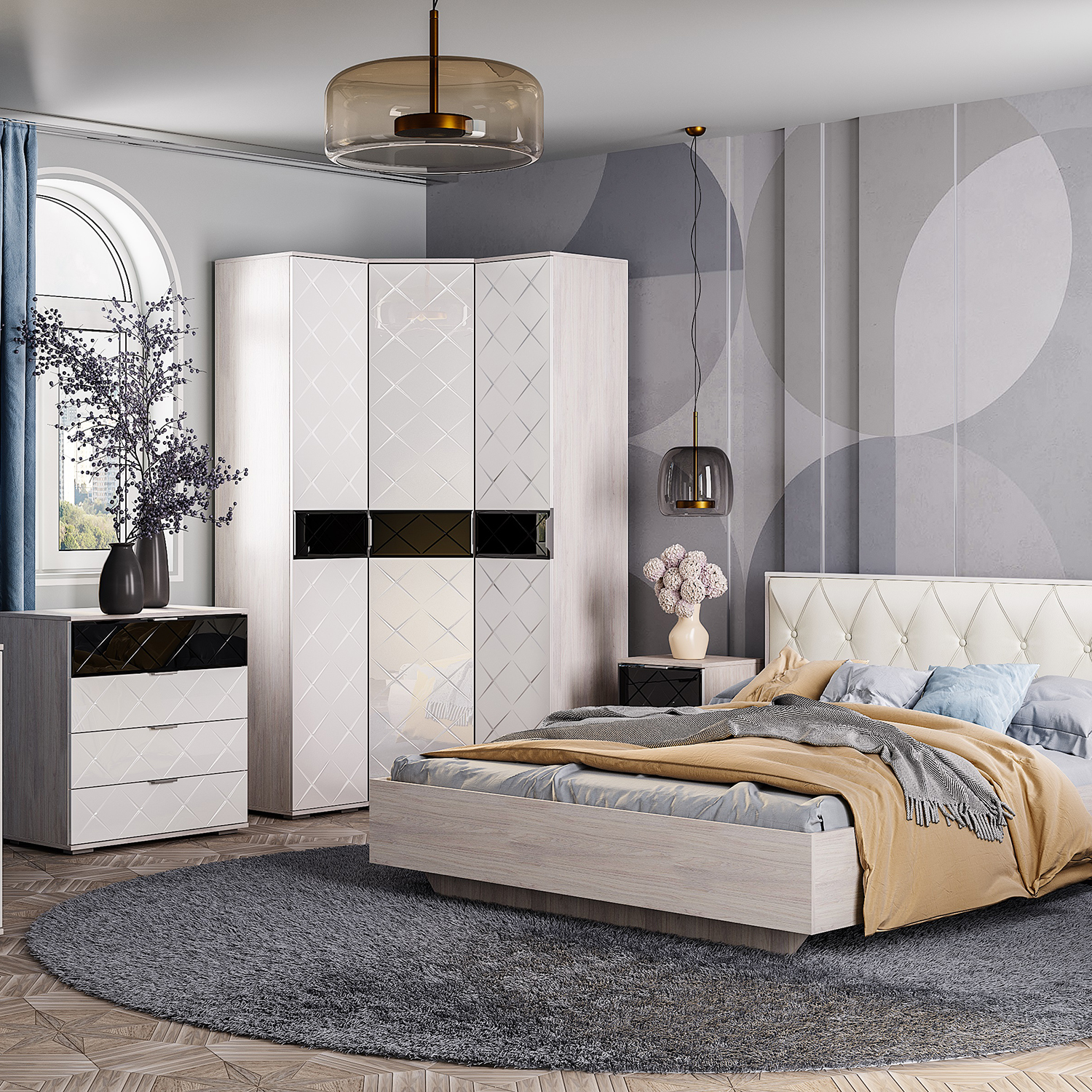 Модульная спальня «Кимберли» - это современная элегантная мебель с остроконечной фрезеровкой фасадов: