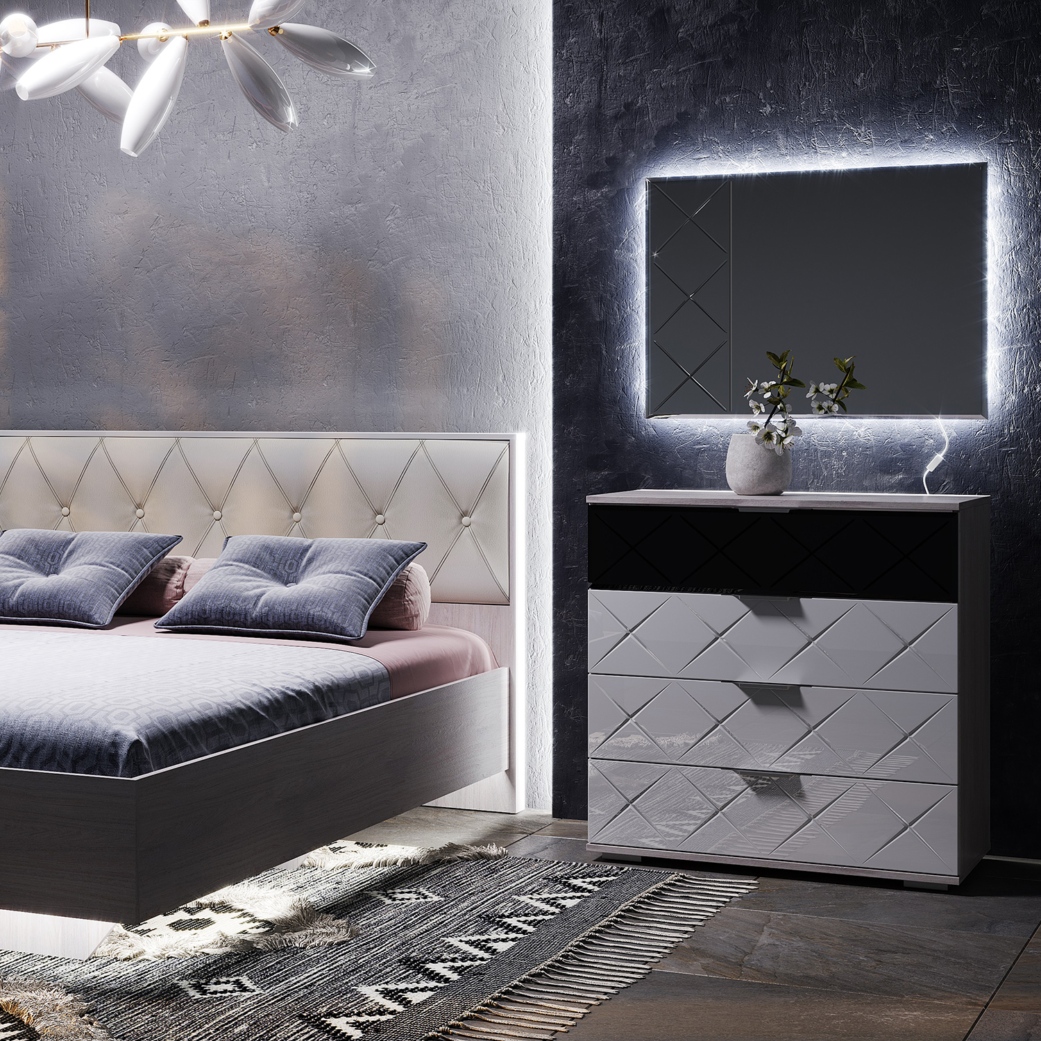 Модульная спальня «Кимберли» - это современная элегантная мебель с остроконечной фрезеровкой фасадов: