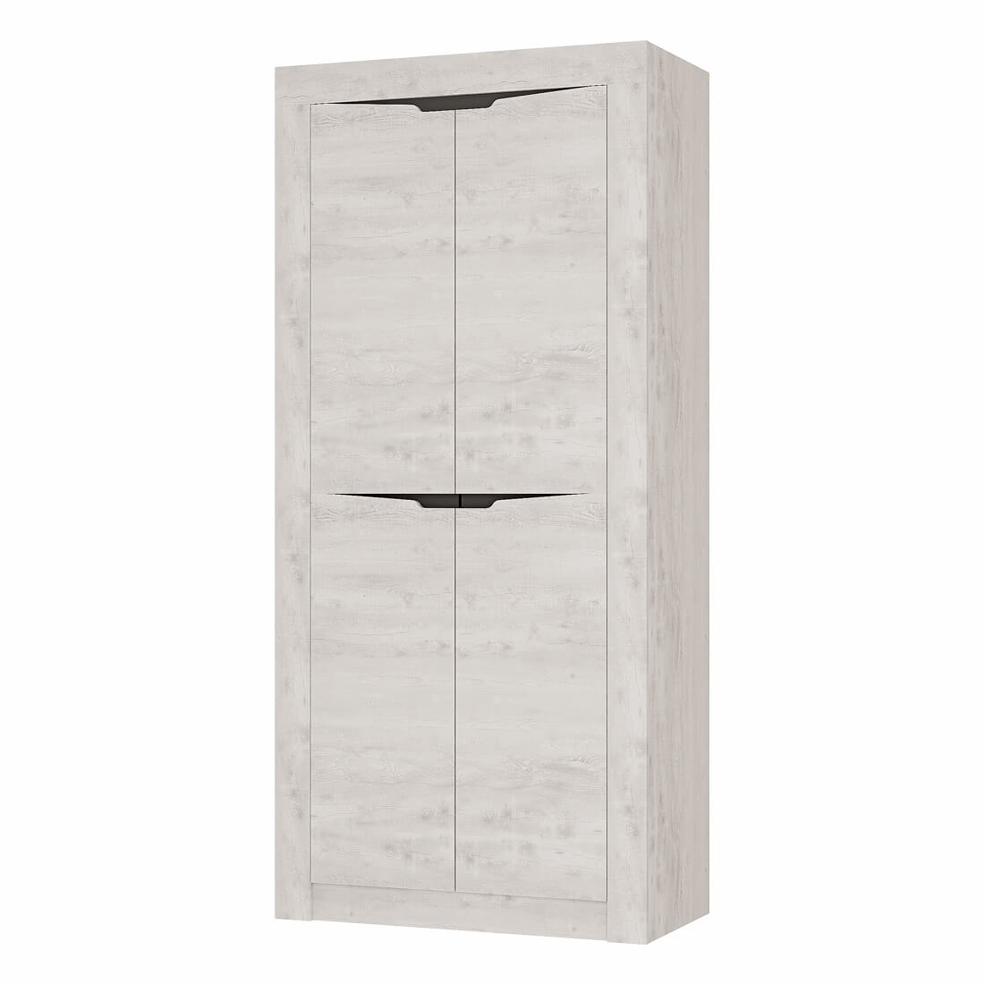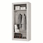 Двустворчатый распашной шкаф «Леонардо» с просторной антресольной полкой для хранения головных уборов, горизонтальной хромированной штангой для плечиков и нижней полкой, в которой удобно хранить коробки с обувью, выдержан в общей стилистики коллекции.