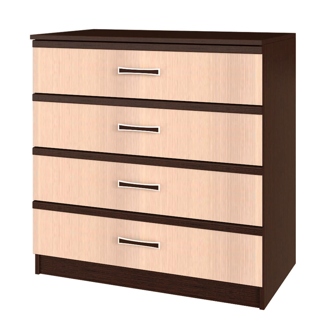 Комод является частью модульной коллекции "Сакура". Его можно поставить как в прихожую, так и в спальню, детскую или гостиную. Модель состоит из четырех выдвижных ящиков, каждый из которых имеет светлый фасад и эргономичную ручку с хромированной отделкой.