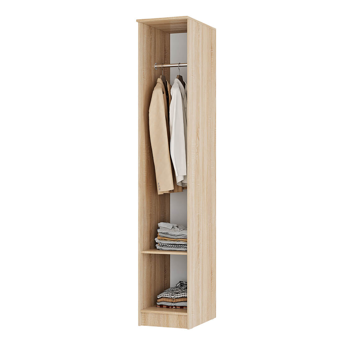 Решить вопрос с хранением вещей в любой комнате поможет пенал Сакура. Модель из классического сочетания двух цветов ЛДСП сонома и белый с лёгкостью впишется в современный интерьер. Внутреннее наполнение изделия представляет собой пять вместительных полок, на которых можно разместить предметы гардероба или постельные принадлежности. Кроме того, в комплект входит продольная штанга, поэтому пенал Сакура станет отличным дополнением композции мебели для прихожей (в этом случае полки не устанавливаются). Высокое качество по доступной цене – это пенал Сакура.