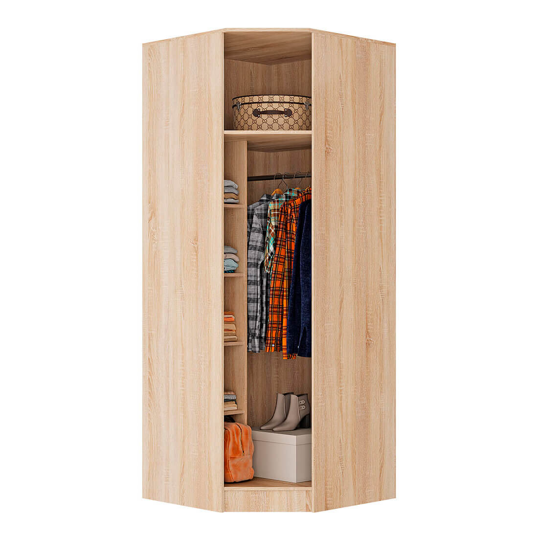 Угловой шкаф Сакура относится к модульной серии мебели и выполнен в одном стиле с другими предметами коллекции. Изделие позволит разместить вам одежду на плечиках в отделении с хромированной штангой, а трикотаж или постельные принадлежности сложить на вместительные полки. Модель изготовлена из ЛДСП в сочетании цветов сонома и белый, будет прекрасно смотреться в интерьере любого стиля. Правильный выбор по лучшей цене — это шкаф угловой Сакура в компании «Семья Мебелони».