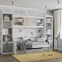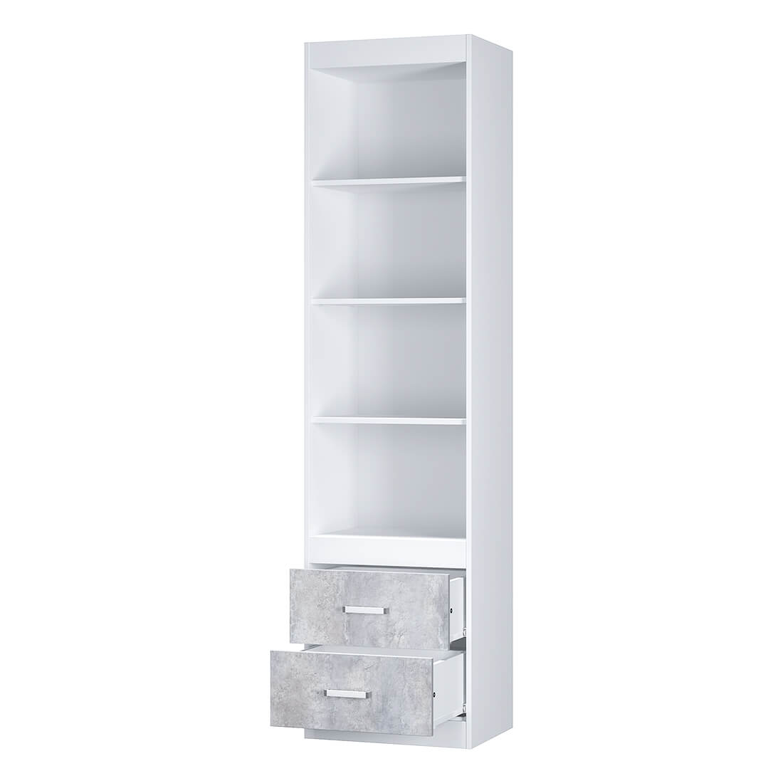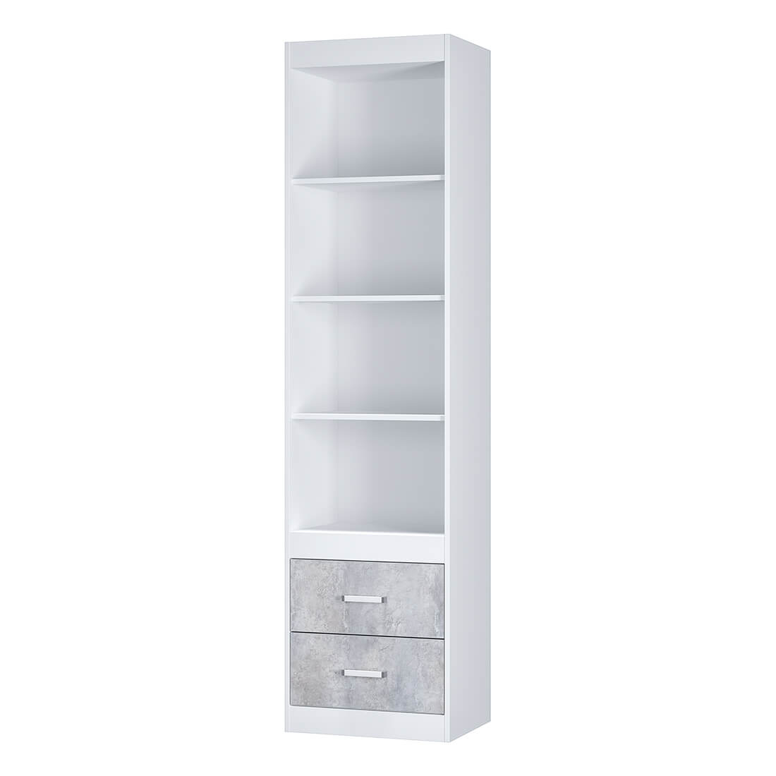 Модель открытого шкафа "Паскаль" состоит из нескольких открытых полок и двух закрытых ящиков. изделие изготовлено из высококачественной ЛДСП в комбинации двух светлых цветов "белый" и "цемент светлый", шкаф можно использовать для хранения книг, игрушек, канцелярских принадлежностей или же вещей.