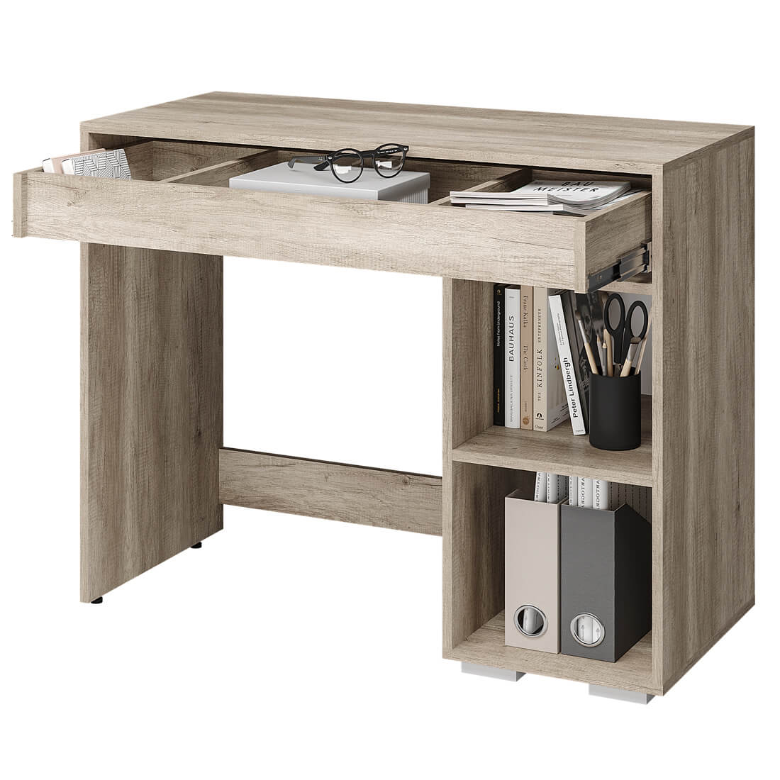 Косметический стол "Наоми" дополнит любую спальню в современном стиле. Модель состоит из большого выдвижного ящика, разделенного на три секции, и отделения с распашной дверцей, за которой находятся полки. Все эти места хранения позволят разместить вам необходимые вещи, косметические средства или украшения.